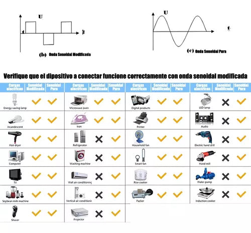 Apto para dispositivos que funcionen con onda senoidal modificada.