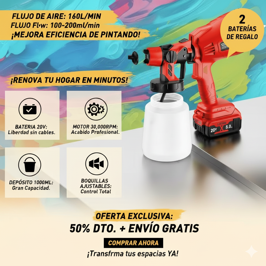 Obtén tu pistola de pintura inalámbrica con 2 baterías de regalo esta semana.