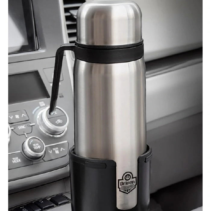 Diseñado para adaptarse a distintos tamaños de termos, botellas y vasos, este soporte transforma tu portavasos en una base firme y multifuncional.