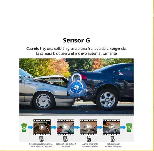 - Sensor G-Shock: Bloquea automáticamente los vídeos en caso de colisión, protegiendo las evidencias de cualquier incidente.